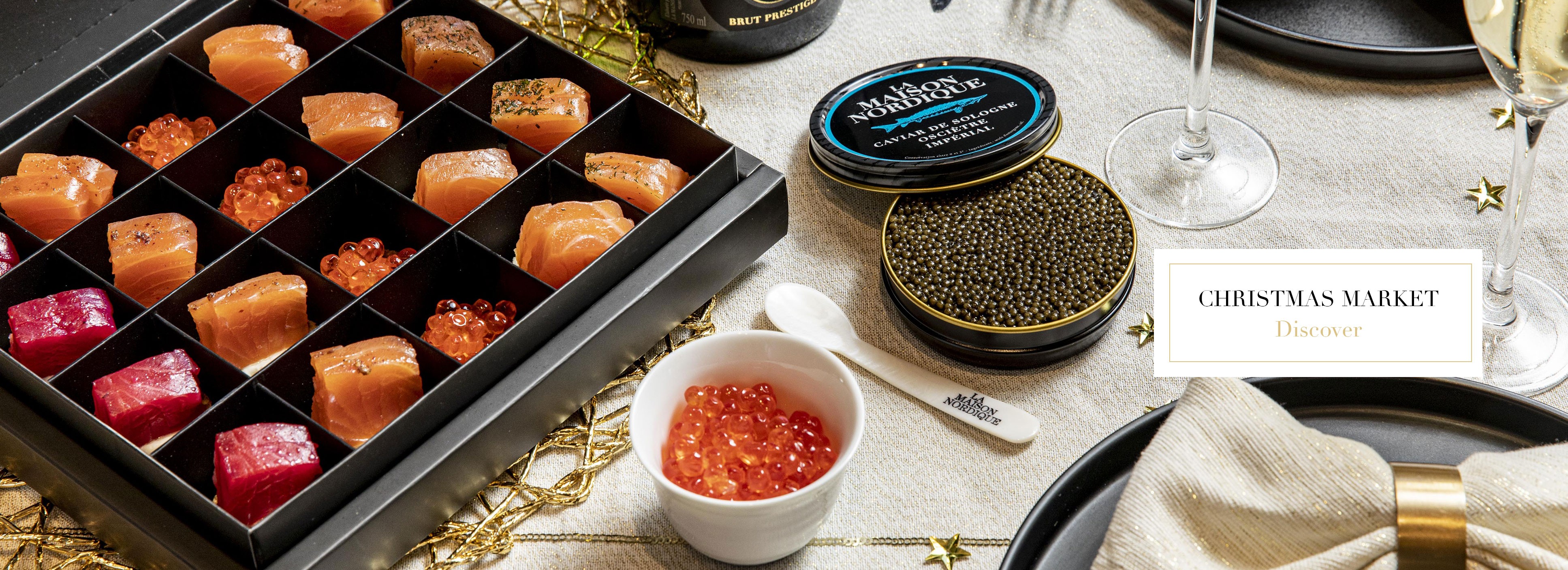 Discover the excellence of exceptional products: caviar, salmon, and more gourmet delights.